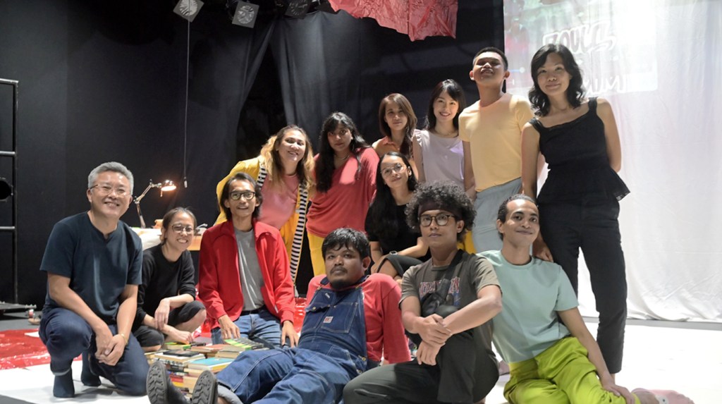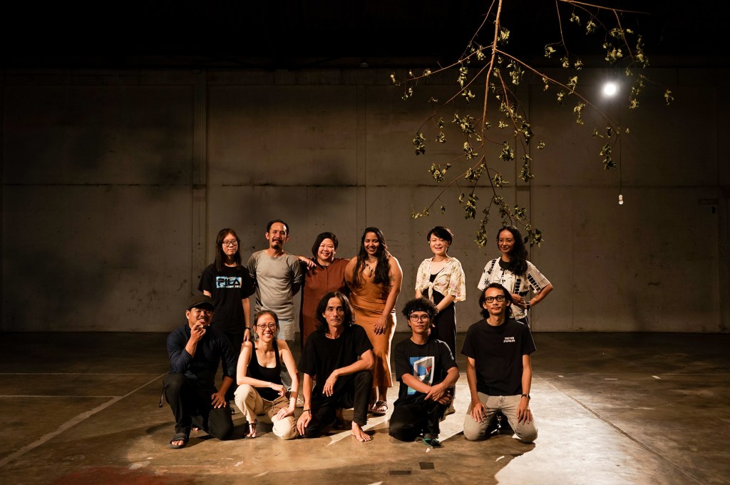 The ties between those in front of and behind the stage are fluid. Someone working backstage in one project may become a performer in the next, and vice versa. This balance often takes on a quiet symmetry in numbers, as in Teater Normcore: Double Bill, where four stood on stage and four worked behind the scenes. / Selain itu, hubungkait antara mereka yang berada di hadapan dan belakang tabir juga lebih cair dalam erti kata mereka yang jadi belakang tabir di satu projek menjadi performer di projek lain, dan sebaliknya. Keseimbangan depan–belakang ini biasanya terzahir secara simetri kuantitinya (contohnya dalam Teater Normcore: Double Bill, ada 4 orang di depan dan 4 orang di belakang tabir).