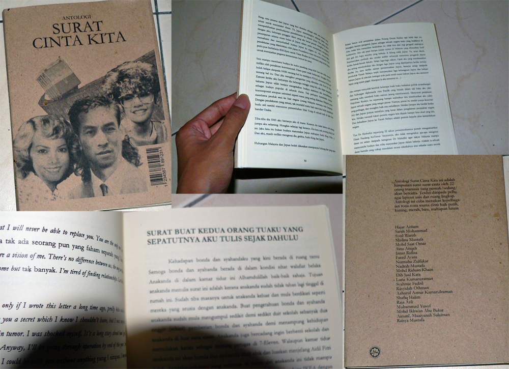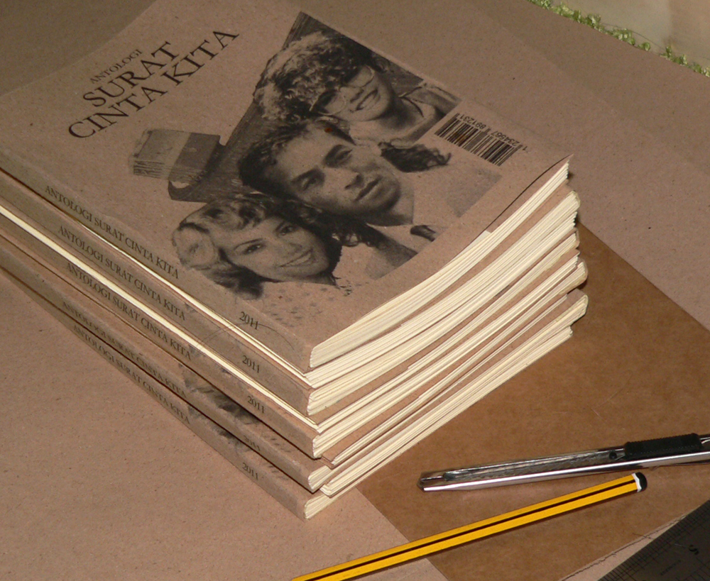 Antologi Surat Cinta Kita (2011) , the secret edition, was made DIY with hand stitching and UHU glue. Even making just one copy for the author alone was overwhelming! / Antologi Surat Cinta Kita (2011) edisi rahsia dibikin secara DIY dengan jahitan tangan dan gam UHU. Untuk membikin satu buat penulisnya saja pun tak menang tangan!