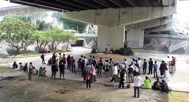 Finally, Paik Yin lay down on the bed, resting after all the previous frenzy. The performance then transitioned to its final adaptation by Sefa Silent, based on Mat Som’s text. Sefa portrayed the mime-character of Mat Som, followed by Poodien, who pasted sketches from the graphic novel of Mat Som along the way, leading us to the circle beneath the roundabout behind JKKN. The space served as a natural city stage, with Sefa in the middle, and Pyanhabib, the real character from Mat Som, joining him in reciting three different poems from the novel. The blend of metafictional and nostalgic spirits brought the negative space, rarely used by motorists but frequently by the city’s homeless for leisure and sleep, to life, reviving the spirit of Kuala Lumpur during the 1980s, which served as the background when Mat Som was written.