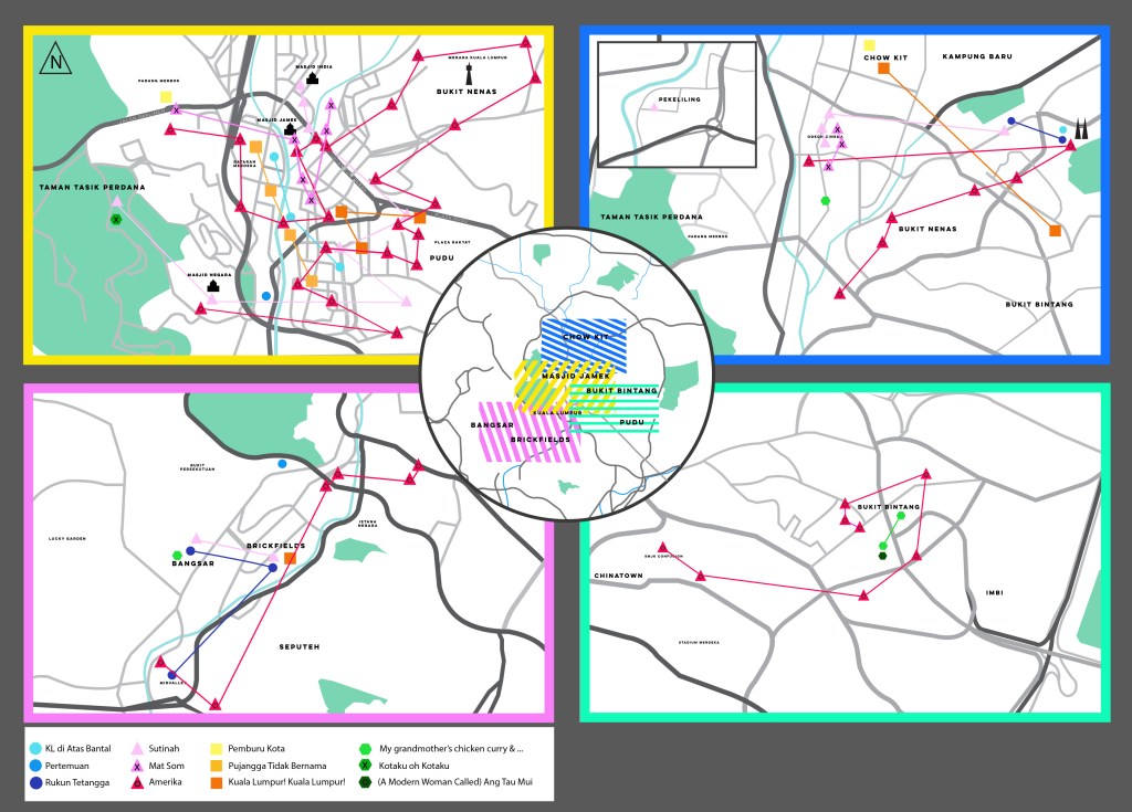 As LiteraTur unfolded on the streets, time seemed to follow a chronological order for both the artists and spectators. However, this audiovisual exhibition presented time in a gradual and simultaneous manner. We could follow Poodien’s journey from his room in Seputeh. Simultaneously, we observed Fasyali at Medan Pasar, where volunteers and participants gathered to start the performance for LiteraTur. These different perspectives provided unique experiences for both participants and spectators. Those not part of the tour would not have felt the semi-Happening experience. The interplay of performances was unique to that specific moment and couldn’t be fully captured even through audiovisual recordings.