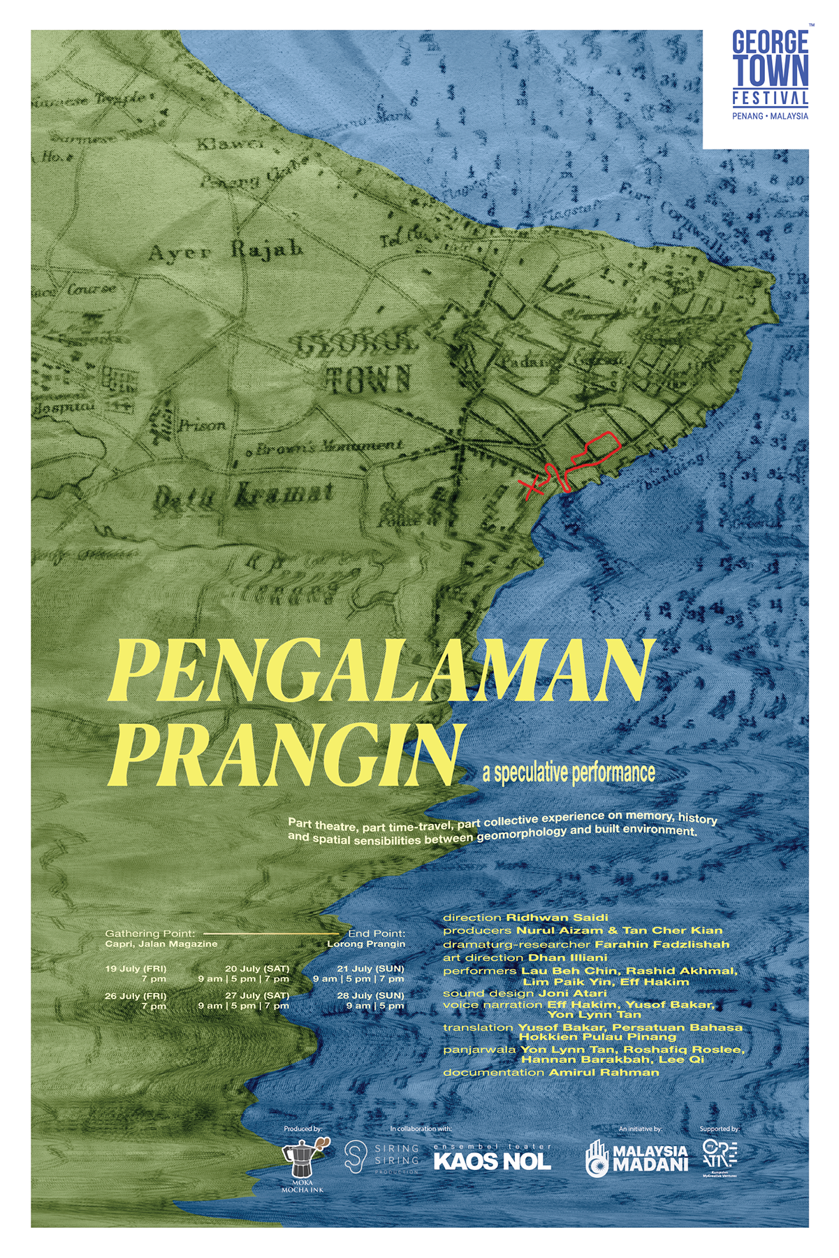 Pengalaman Prangin is a speculative roving performance that is part theatre, part time-travel, and part collective experience on memory, history and spatial sensibilities between geomorphology and the built environment.