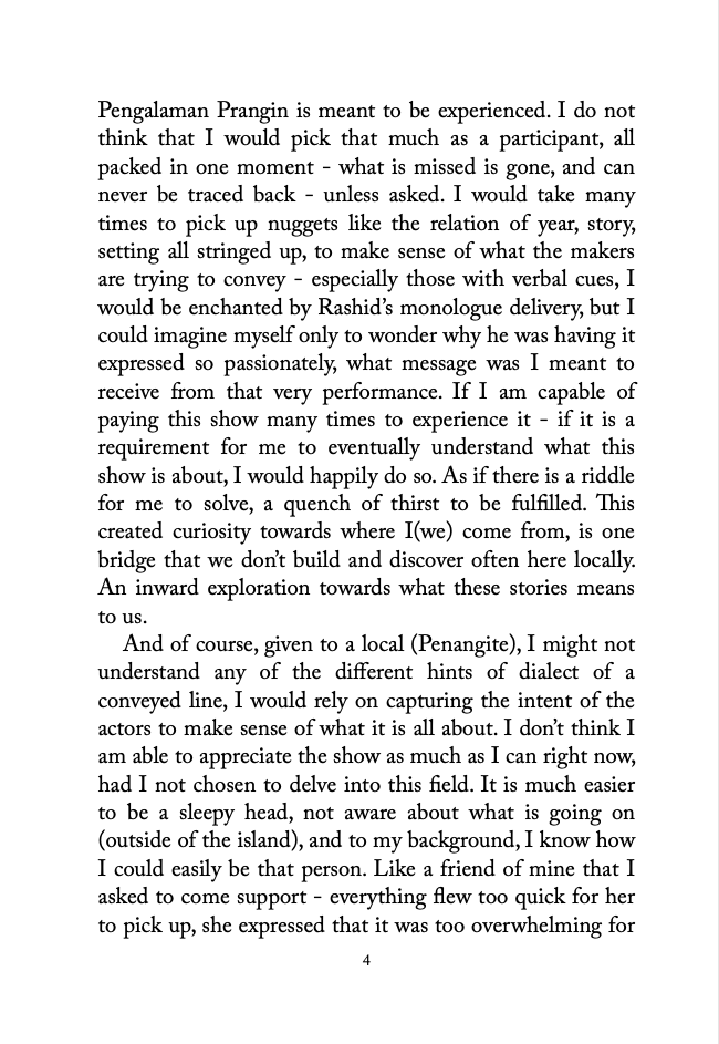 “I cried 3 times in its 75 minutes, partly because of how beautiful the experience is, and mainly because my inner child was made safe and joyful, with the support of an entire community – RELA, the local council, and everyone, really – something the KL art scene isn’t as privileged to access.“ – Mia Sabrina Mahadir via ig